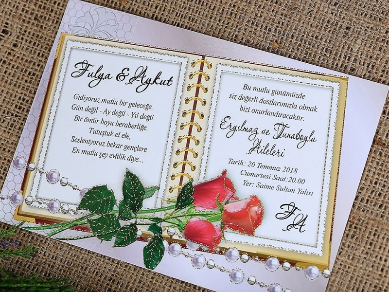 Davetiyelerin iç kısmını isteğinize göre tasarlayabiliriz. Yazı karakterleri metinler isteğe göre değiştirilebilir.
