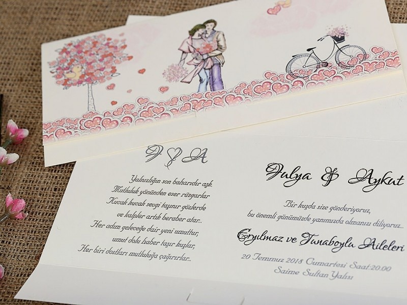 Davetiyelerin iç kısmını isteğinize göre tasarlayabiliriz. Yazı karakterleri metinler isteğe göre değiştirilebilir.