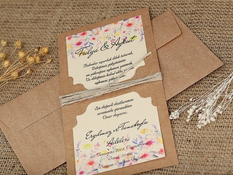Davetiyelerin iç kısmını isteğinize göre tasarlayabiliriz. Yazı karakterleri metinler isteğe göre değiştirilebilir.