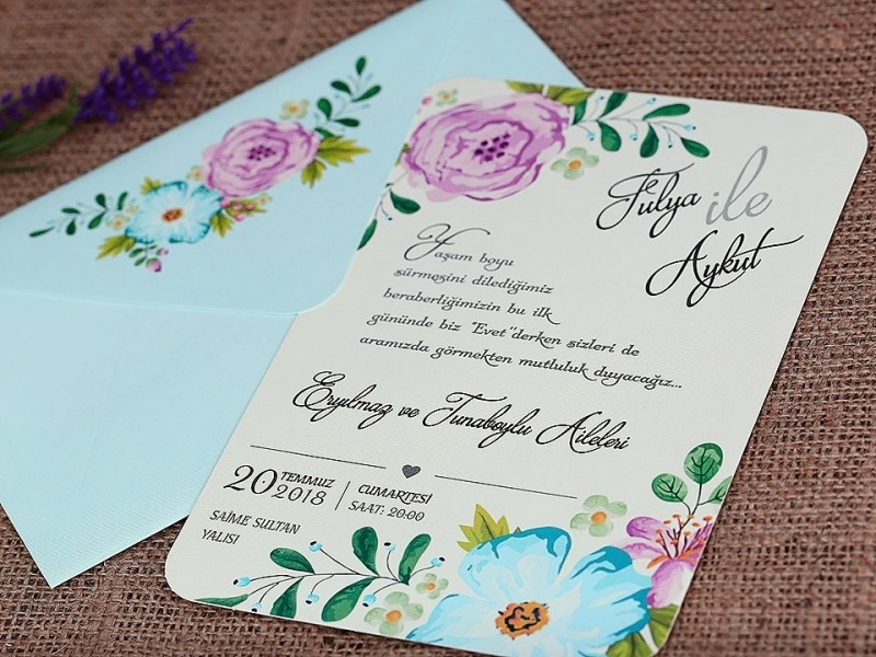 Davetiyelerin iç kısmını isteğinize göre tasarlayabiliriz. Yazı karakterleri metinler isteğe göre değiştirilebilir.